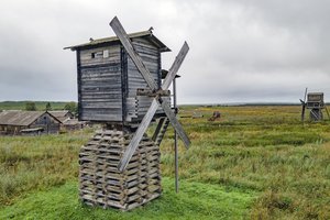 – Эти мельницы голландского типа строили раньше только вокруг Холмогор и больше нигде, — рассказывает Николай. — До начала XVII века Холмогоры были здесь главным городом, через них, не через Архангельск, шла вся торговля с Западом. Ну и после этого в Архангельске было представительство Голландии, и местный житель, судостроитель Негодяев, а также его потомки дружили с голландским консулом (назовем его так для ясности). Он даже по пути в Москву останавливался здесь. А через речку, на правом берегу, в Вавчуге, была верфь Баженина — у них вообще дети в Голландии учились. В Холмогорах жили голландцы, женатые на русских…