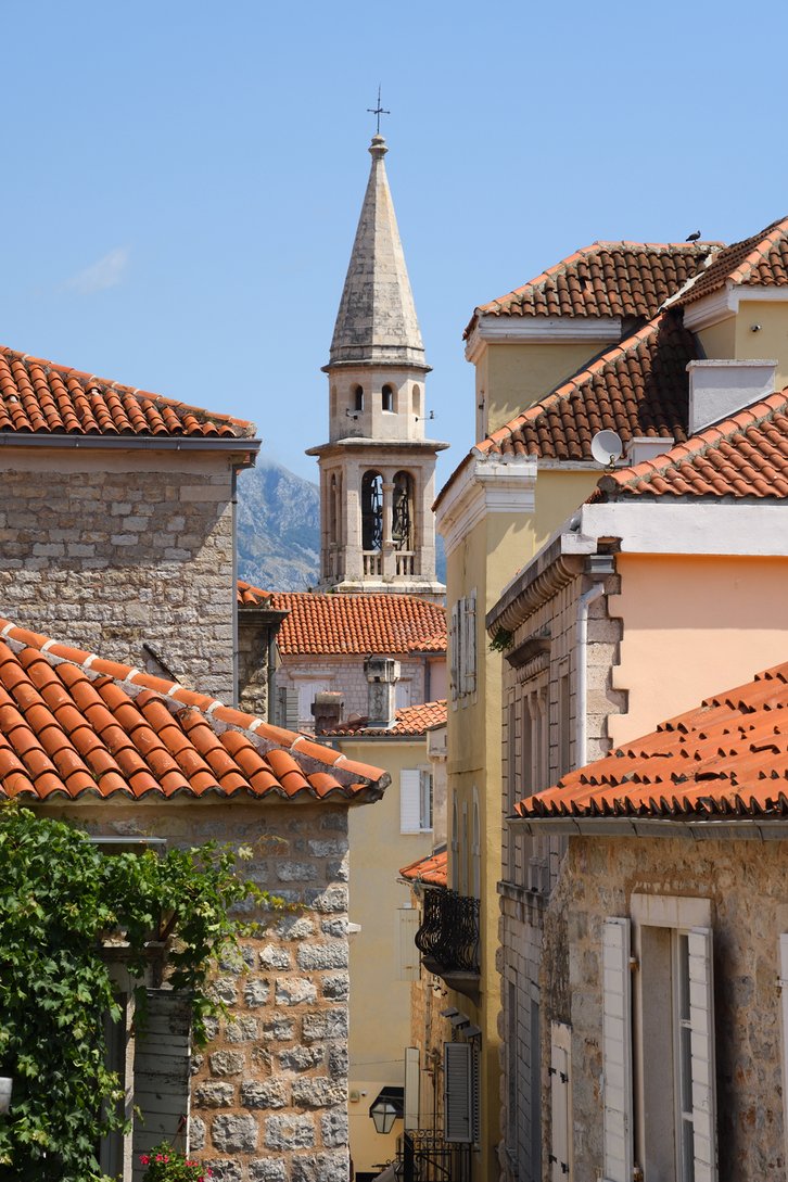 Колокольня и дома в старой части города Будва, ЧерногорияФото: Анатолий Садовский / фотохостинг Russian Traveler
