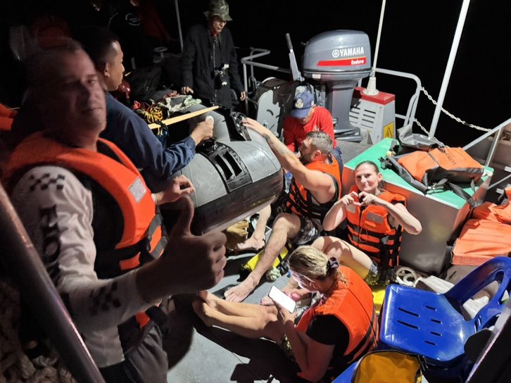 На сигнал бедствия катера откликнулись моряки с эсминца Hua Hin, но отправленный к туристам военный катер не смог приблизиться к скалам. Моряки приняли решение добраться до мыса Панва – там они обратились к спасателям и запаслись необходимым оборудованием. После этого специалисты на резиновой лодке смогли добраться до туристов и эвакуировать их вместе с капитаном с опасного берега.