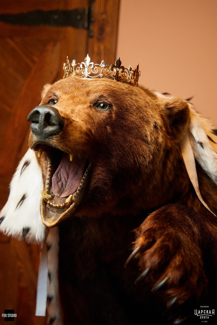 Ресторан с говорящим названием переносит гостей в атмосферу богатого охотничьего дома. Интерьер впечатляет деталями: сложная резьба по дереву, ставни на окнах, картины со сценами охоты и настоящие трофеи создают совершенно особенный антураж.