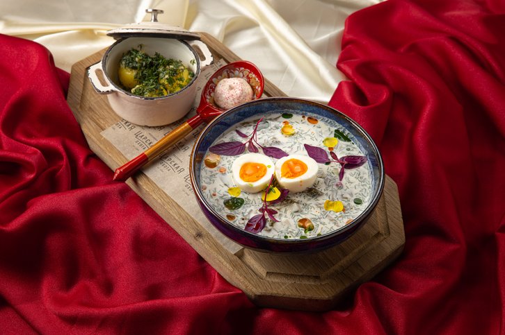У ресторана обширная коктейльная карта, где особенно выделяется «Коктейльный атлас путешествий по России», и хорошая подборка вин. Не забудьте оставить место для десерта — их подача здесь приравнивается к настоящему искусству. Это универсальное место, которое подойдет для разных поводов: в будни здесь подают бизнес-ланчи, а для путешественников с детьми предусмотрено отдельное меню.