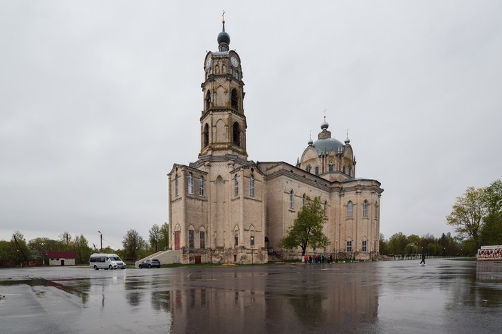 По пути из Рязани в Гусь-Железный стоит заехать в два интереснейших храма. Величественный собор Святой Троицы в Туме украшен уникальными фресками по эскизам Васнецова, Нестерова, Семирадского и других великих мастеров, а псевдоготический храм Троицы Живоначальной в Гусе-Железном был заложен по по заказу промышленника Андрея Баташова — рязанского Дракулы.