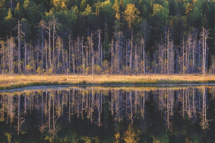 Сергей Андреев, автор фото выше: «Этот кадр был сделан на рассвете. Из алтайского села Кош-Агач мы выехали ещё затемно. Всю ночь небо было затянуто тучами и накрапывал небольшой дож-дик, но рано поутру солнце внезапно пробилось- через пелену облаков, и урочище мгновенно окрасилось красным, рыжим, жёлтым и фиолетовым цветами. Невероятная красота!»